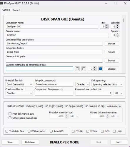 Это инструмент, разработанный для совместной работы с .CLS-DiskSpan.dll (от Razor12911) для создания сжатых файлов с помощью внешних компрессоров, предварительно настроенных в файле ".ini".