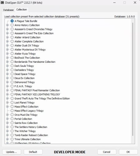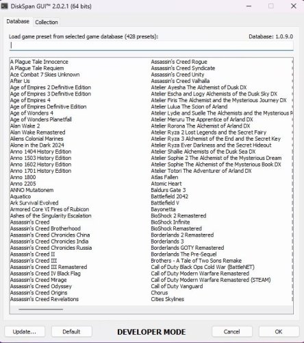 - С помощью графического интерфейса DiskSpan можно настроить коллекцию игр с определёнными методами, заданными для каждой игры.